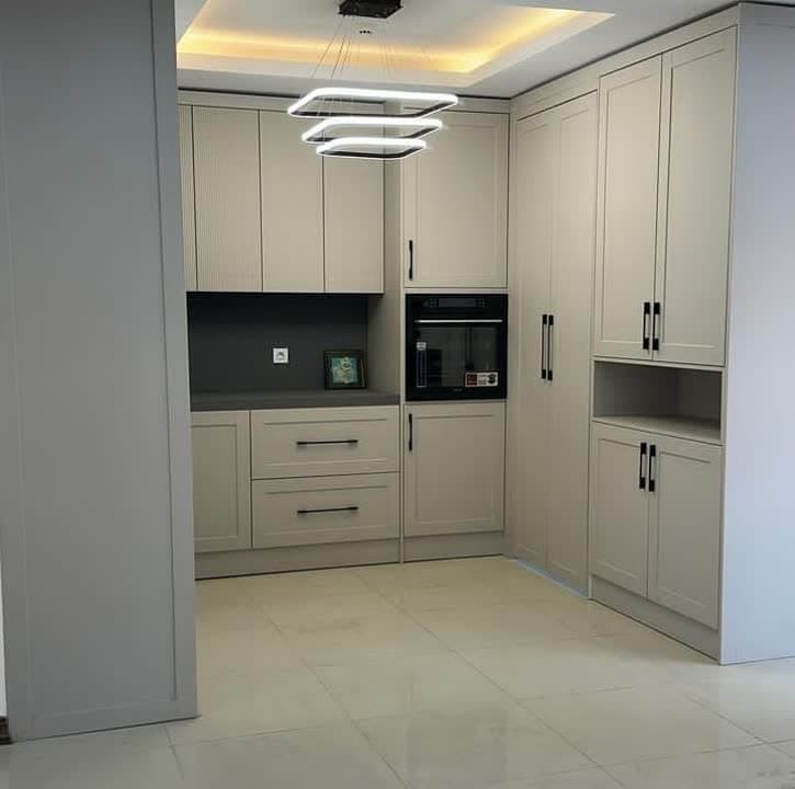 4. نصب: پس از ساخت اجزای کابینت، آنها به محل نصب منتقل میشوند و به همراه قطعات دیگری مانند دستگیرهها، ریلها و... نصب میشوند.